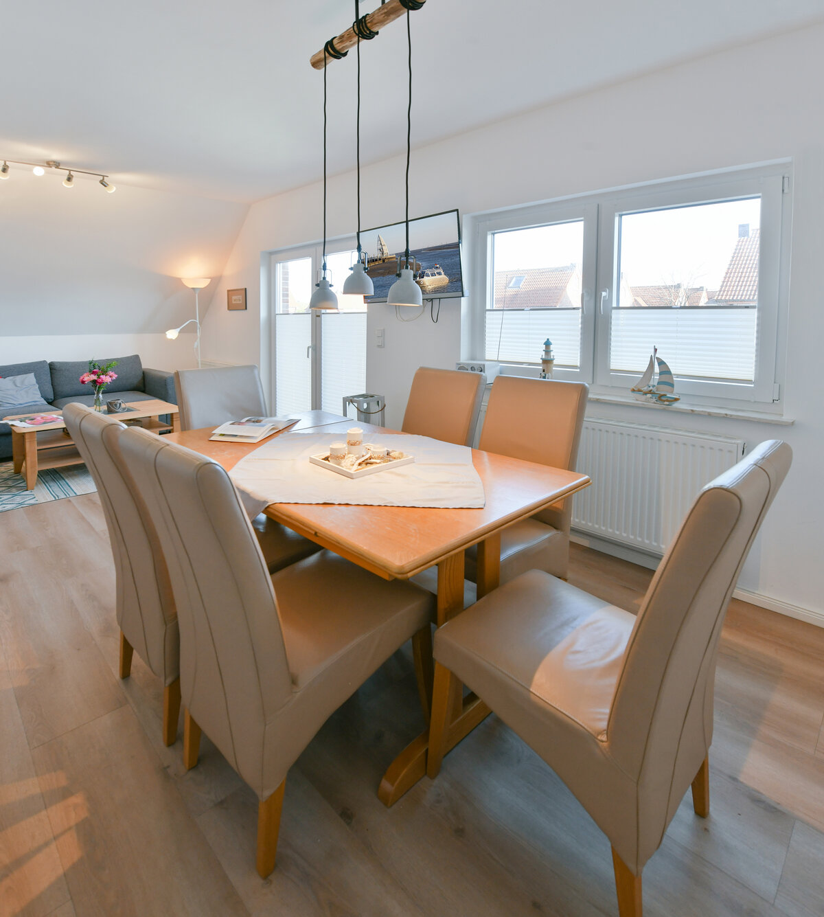 In unserem modernen Töwer19 können Sie zwischen zwei ruhigen, hellen Ferienwohnungen auswählen, die geschmackvoll und gemütlich eingerichtet sind. Als mehrköpfige Familie bis zu 6 Personen finden Sie allen Komfort in unserer geräumigen Wohnung Seehund mit großem Balkon. Alleine oder für romantische Tage zu zweit können Sie sich in unserer Wohnung Delfin ideal entspannen.